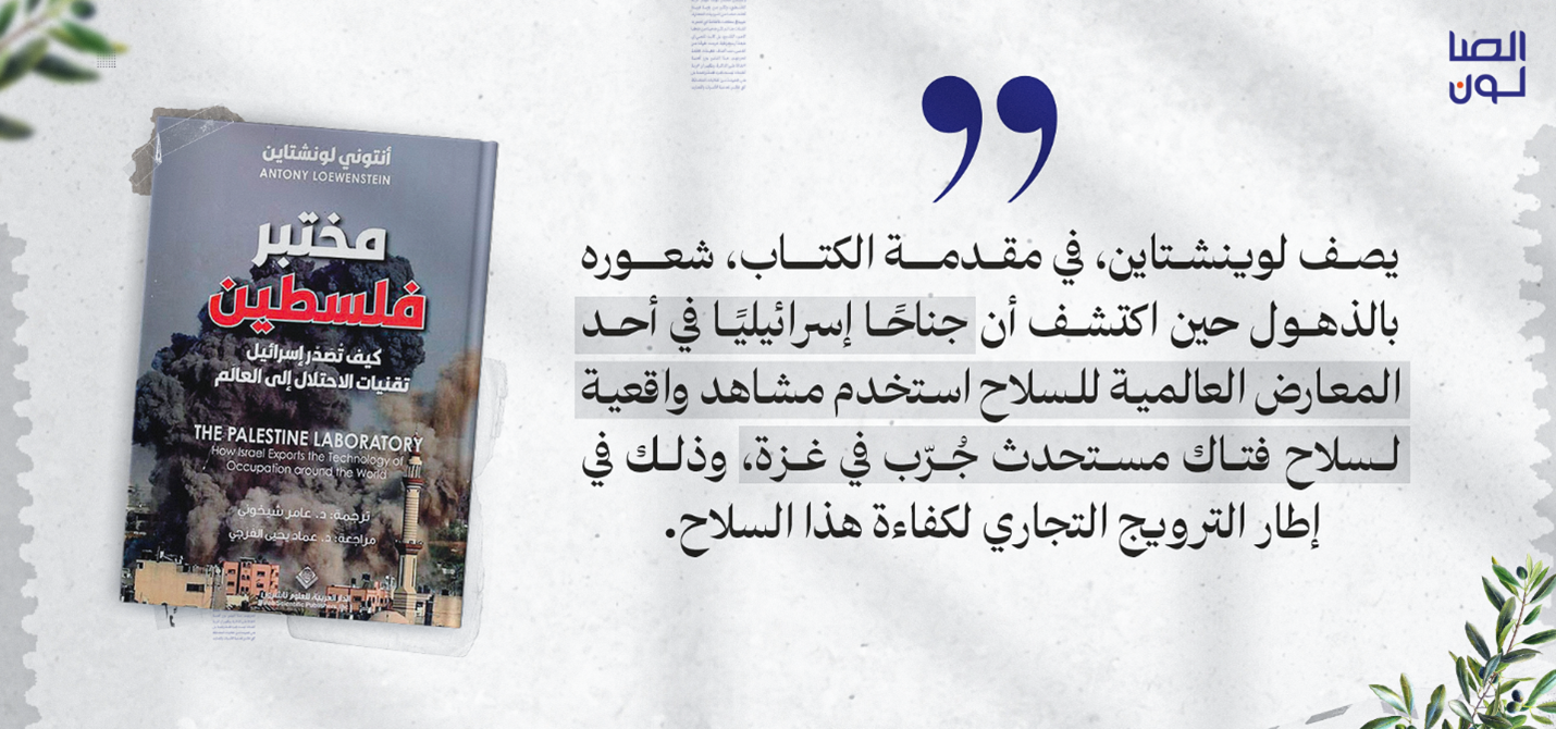 لم يكن كتاب "المختبر الفلسطيني: كيف تصدّر إسرائيل تقنيات الاحتلال إلى العالم" هو العمل الأول الذي يفضح فيه الصحفي الاستقصائي الأسترالي اليهودي، أنتوني لوينشتاين، جرائم الاحتلال الإسرائيلي بحق الشعب الفلسطيني في الأراضي المحتلة. فعلى مدى أكثر من عقدين قبل صدور هذا الكتاب في أيار/ مايو 2023، وقبل شهور قليلة من اندلاع الحرب الإبادية التي شنّتها إسرائيل على غزة في تشرين الأول/ أكتوبر من العام نفسه ، كتب لوينشتاين الكثير من المقالات، نشرت في كبرى الصحف الدولية في أستراليا، وبريطانيا، والولايات المتحدة الأمريكية، حول ما يرتكبه الاحتلال من فظائع بحق الشعب الفلسطيني.إلا أن هذا الكتاب يُعدّ من أهم ما قدّمه لوينشتاين في هذا السياق، إذ يوثّق بالتفاصيل كيف تستخدم إسرائيل غزة وسكّانها كمساحة لاختبار أنواع مستحدثة من الأسلحة القاتلة، قبل تسويقها عالميًا. وتُسهم هذه الاختبارات في تعزيز صادرات إسرائيل من السلاح وتقنيات التجسس الحديثة إلى مختلف دول العالم، بما في ذلك دول عربية وإسلامية.