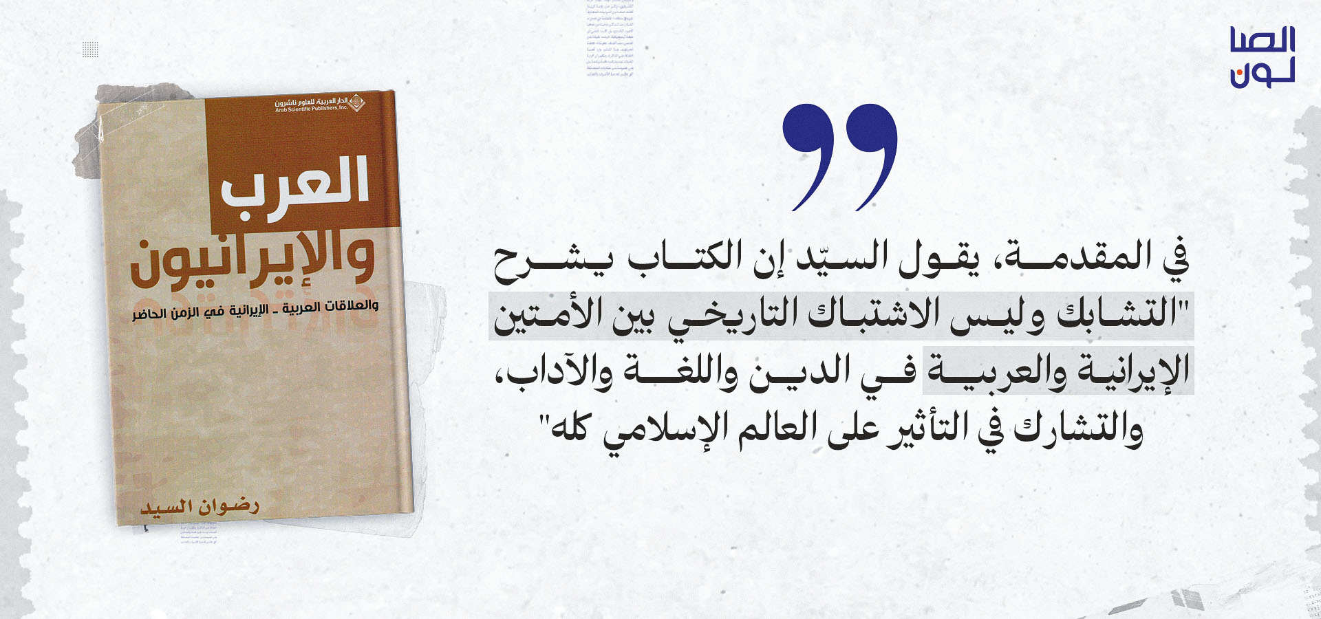 في مقدمته، يقول السيّد إن الكتاب يشرح "التشابك وليس الاشتباك التاريخي بين الأمتين الإيرانية والعربية في الدين واللغة والآداب، والتشارك في التأثير على العالم الإسلامي كله". ويلفت إلى أن "العلماء والشعراء الإيرانيين يستخدمون ما نسبته 40 في المائة من المفردات والتعابير العربية في النثر والشعر، فضلًا عن الصور والتشبيهات". ويضيف أن "الفقه السني وعلم الكلام السني (الأشعري) من أصول إيرانية. والتشيع السائد في إيران من أصول عربية."