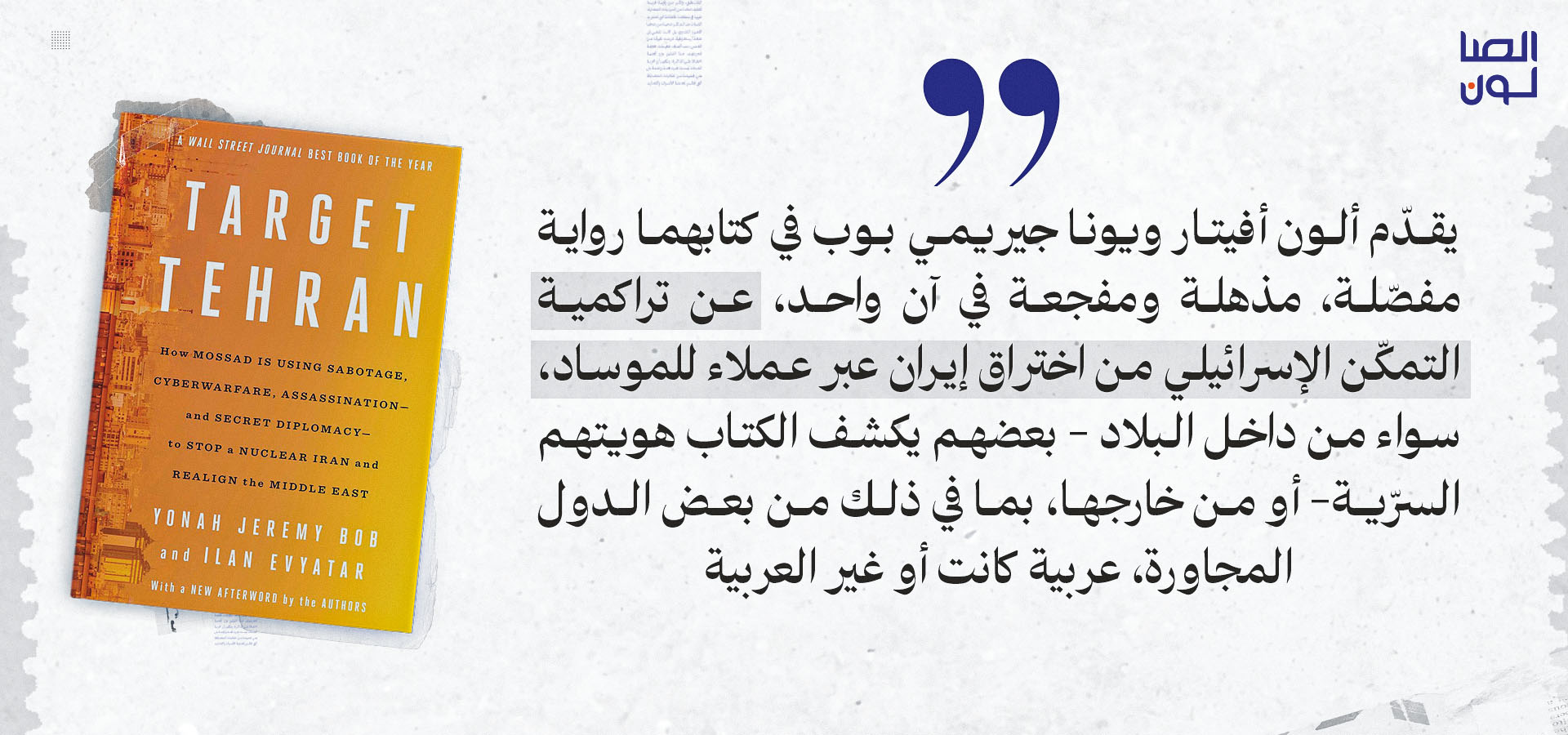 أصدر ألون أفيتار، رئيس تحرير جيروزالِم بوست، ويونا جيريمي بوب، محرّر الشؤون العسكرية والاستخباراتية فيها، في عام 2023، كتابهما المشترك استهداف طهران، الذي يوثّق مسار التوغّل الإسرائيلي في الداخل الإيراني.