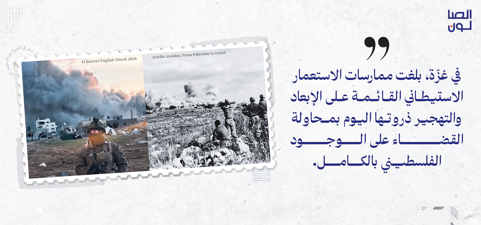 جميع الصور الواردة أعلاه مستمدة من كتاب:Ariella Aïsha Azoulay, From Palestine to Israel: A Photographic Record of Destruction and State Formation, 1947–1950, Pluto Press, 2011 وجميع الحقوق محفوظة للناشر.